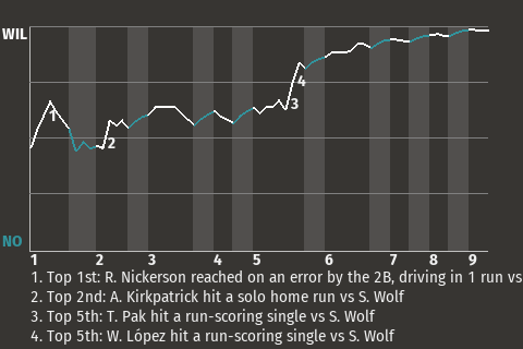 2 (8, 1st Inning off S. Wolf, 0 on, 0 outs; 2nd Inning off S. Wolf, 0 on, 2 outs)