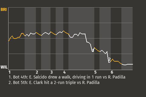 Williams, who dominated for Wilmington, earned the victory to move to 1-0. He was in control the whole game, scattering 2 hits over 9 innings, while striking out 7. Brick batters could never bunch up enough hits to produce a rally.