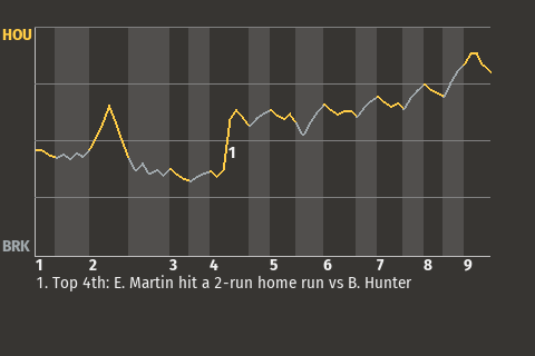 Long, who dominated for Houston, earned the victory to move to 5-1. He was in control the whole game, scattering 3 hits over 8 innings, while striking out 11. Brooklyn batters could never bunch up enough hits to produce a rally.
