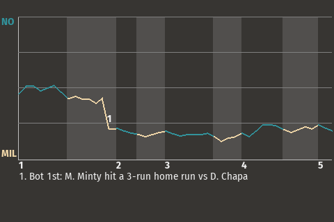 Mike Minty, who is tied for 2nd in the SDMB in extra base hits with 24, chipped in for Milwaukee with a 3-run home run in the bottom of the first. For the game, the right fielder had 2 hits in 3 at-bats with 1 home run, 1 single, 1 run scored, and 3 runs batted in.