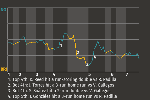 (9, 5th Inning off R. Padilla, 2 on, 0 outs)