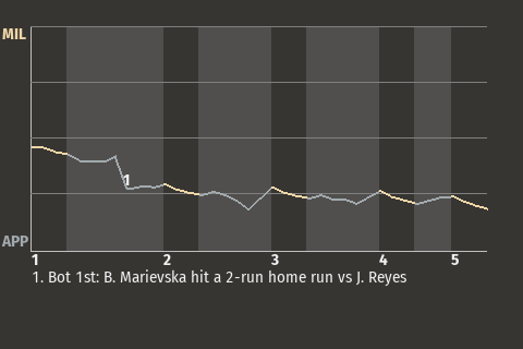 2 (16, 1st Inning off J. Reyes, 1 on, 1 out; 5th Inning off J. Reyes, 0 on, 0 outs)