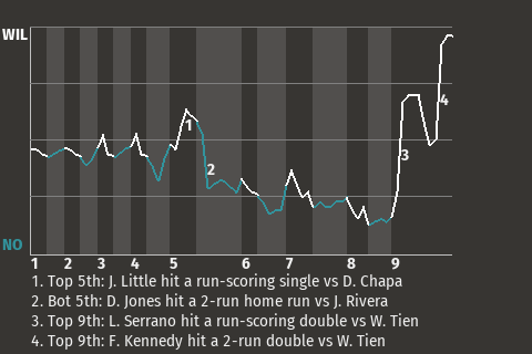2 (4, 8th Inning off D. Chapa, 0 on, 2 outs; 9th Inning off G. Jenkins, 1 on, 2 outs)