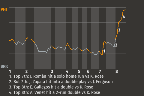 (9, 8th Inning off K. Rose, 2 on, 1 out)