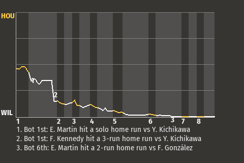 2 (5, 1st Inning off Y. Kichikawa, 0 on, 0 outs; 6th Inning off F. González, 1 on, 1 out)